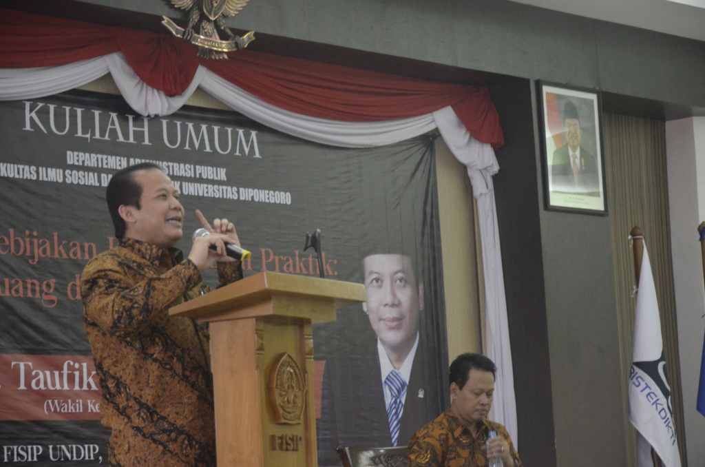 Kuliah Umum Wakil Ketua DPR RI Taufik Kurniawan Tantangan makro nasional adalah kebijakan reformasi anggaran dan pembiayaan pembangunan Indonesia. Hal tersebut disampaikan oleh Wakil Ketua DPR RI Taufik Kurniawan saat menyampaikan Kuliah Umum di Fisip Undip, Kamis (14/9). Kuliah ini mengambil tema “Formulasi Kebijakan Publik Dalam Praktek: Peluang dan Tantangan”. Wakil Ketua DPR Bidang Ekonomi dan Keuangan […]
