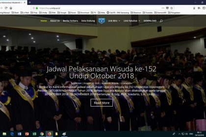 Berikut ini Kami informasikan jadwal pelaksanaan Upacara Wisuda ke-152 Universitas Diponegoro Periode OKTOBER/NOVEMBER Tahun 2018, bahwa Upacara Wisuda akan dilaksanakan pada tanggal 30 OKTOBER 2018 – 02 NOVEMBER 2018 bertempat di Gdg. Prof. Soedarto, S.H., Undip – Tembalang, Semarang.