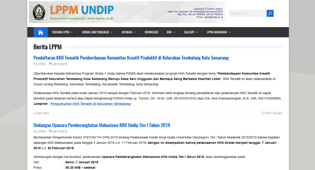 Diberitahukan kepada Mahasiswa Program Strata 1 Undip bahwa P2KKN akan melaksanakan program KKN Tematik dengan tema “Pemberdayaan Komunitas Kreatif Produktif Kelurahan Tembalang Kota Semarang Menuju Desa Seni Unggulan dan Berdaya Saing Berbasis Kearifan Lokal“. KKN Tematik ini akan dilaksanakan di Dusun Jurang Belimbing, Kelurahan Tembalang, Kecamatan Tembalang, Kota Semarang. Pelaksanaan KKN Tematik pada bulan Januari 2019 sampai […]