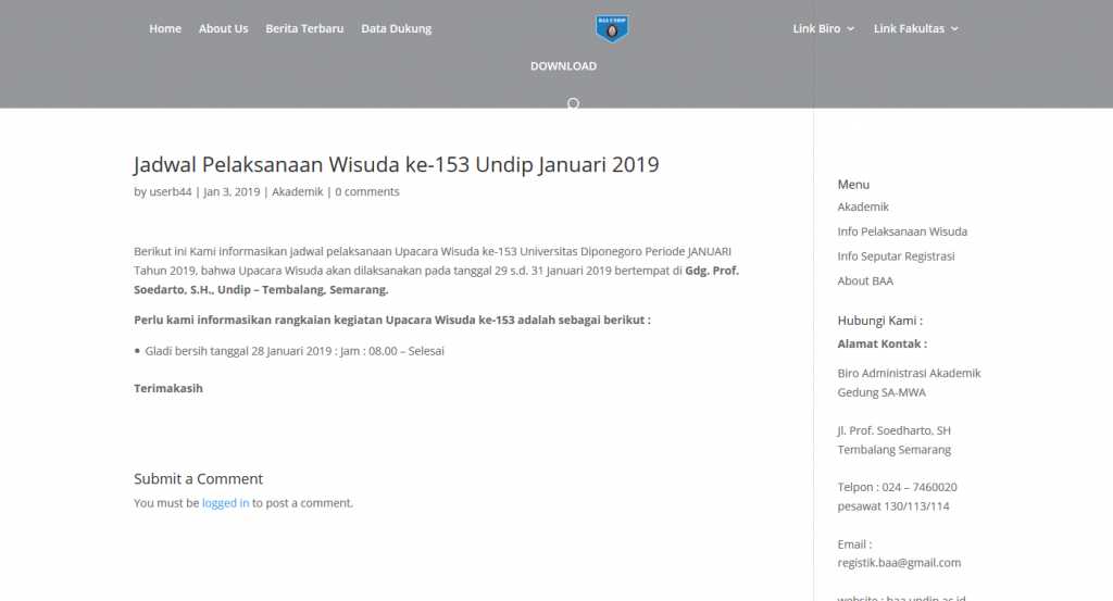 Jadwal Pelaksanaan Wisuda ke-153 Undip Januari 2019