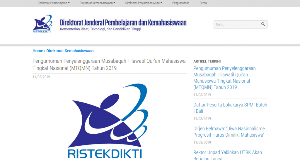 Pengumuman Penyelenggaraan Musabaqah Tilawatil Qur’an Mahasiswa Tingkat Nasional (MTQMN) Tahun 2019