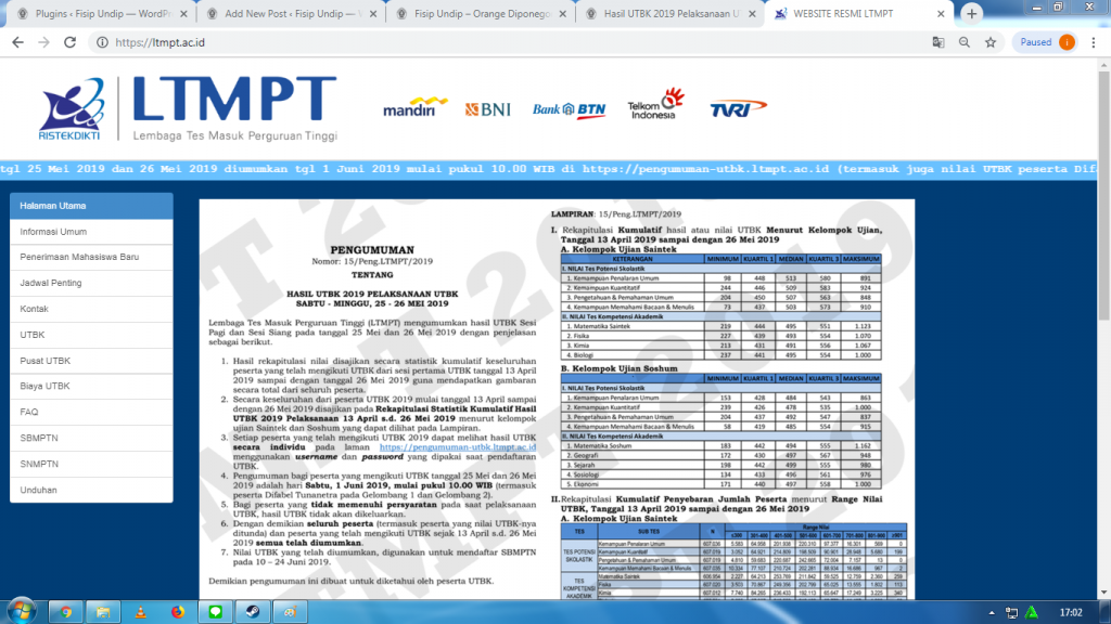 Hasil UTBK 2019 Pelaksanaan UTBK Sabtu-Minggu, 25 – 26 Mei 2019
