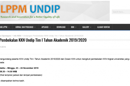 - Jadwal dan Tempat Pembekalan KKN Undip Tim I Tahun 2020
