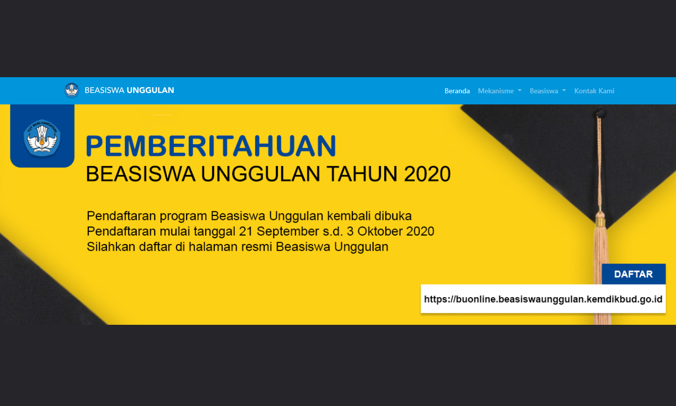Unggulan Scholarship of Outstanding Society is a domestic scholarship for Bachelor, Master, and Doctoral degrees. Prospective students who have held an acceptance letter at a university or those who have run the lectures a maximum of 2 semesters by the time they sign up may apply for the Unggulan Scholarship of Outstanding Society.