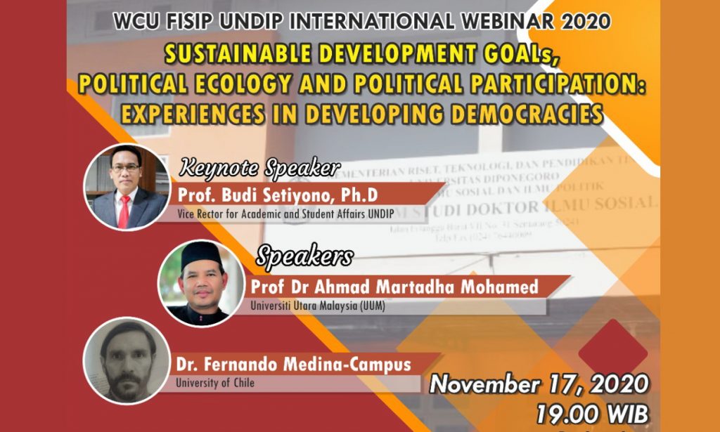 WCU FISIP UNDIP International Webinar 6th. “Sustainable Development Goals, Political Ecology And Political Participation: Experiences In Developing Democracies”
