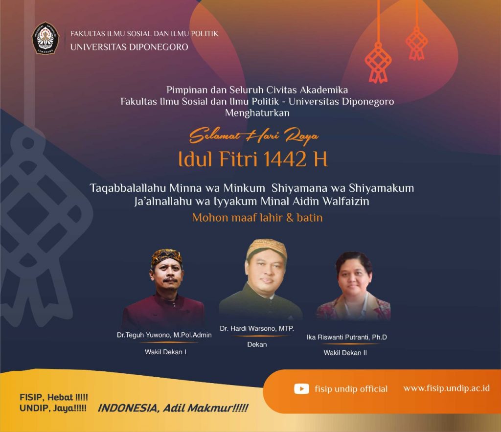 Pimpinan dan Seluruh Civitas Akademika FISIP UNDIP Mengucapkan Selamat Hari Raya Idhul Fitri 1442 H