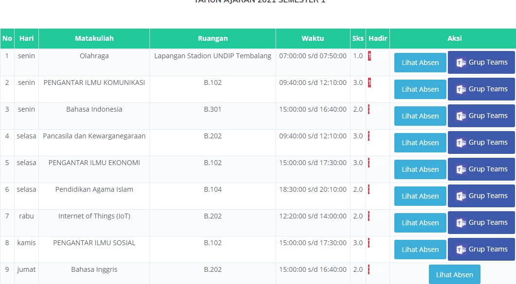 Class Schedule of New Students at Communication Studies on Odd Semester Lectures 2021/2022 (Picture: Maria)