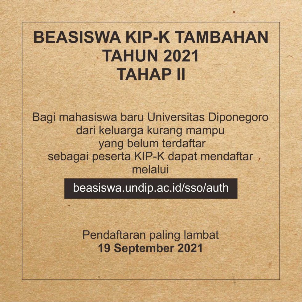 Hereby we announce that there is still a quota for the 2021 KIP Kuliah Scholarship. Therefore, we open up the registration for additional KIPK batch II with the following requirements: