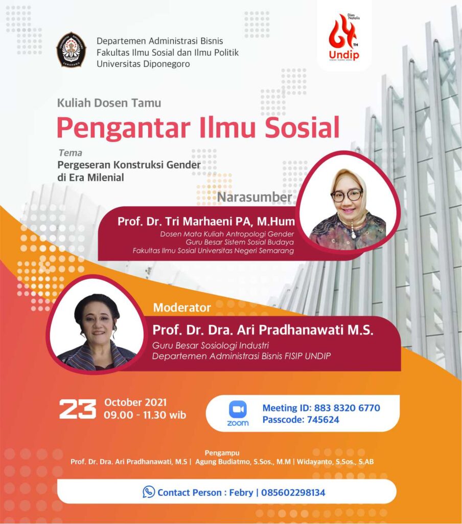 Kuliah Dosen Tamu Pengantar Ilmu Sosial Administrasi Bisnis : Pergeseran Konstruksi Gender di Era Milenial