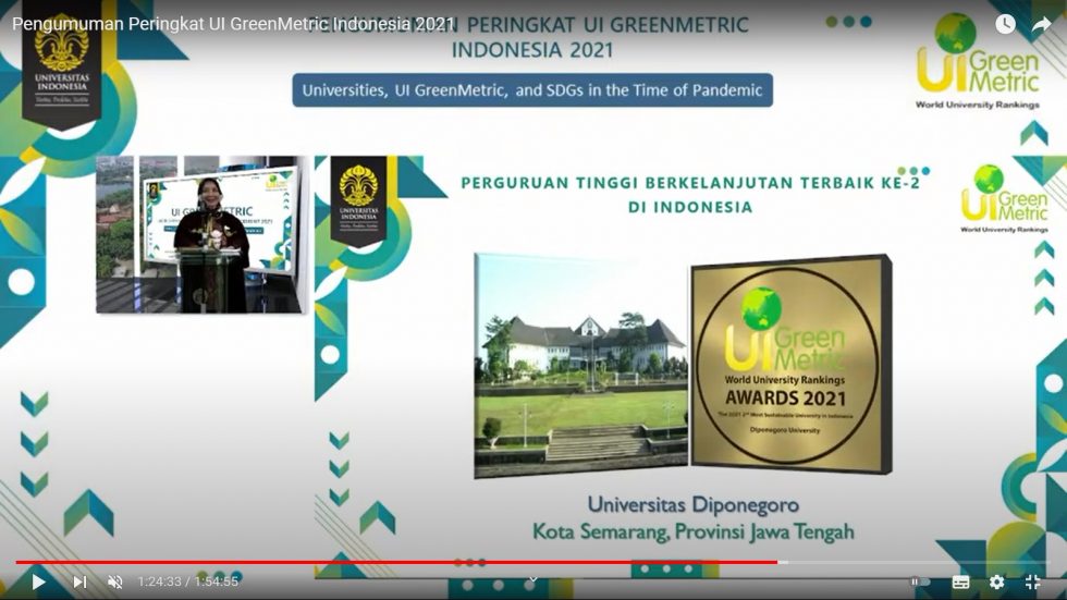 The Rector of Unidp, Prof. Dr. Yos Johan Utama SH Mhum, said he was grateful for the UI GreenMetric 2021 award. What Undip did, said Prof. Yos, was to provide service and do the best, so that when the results were appreciated, the word gratitude was conveyed. To be sure, Undip’s main goal in participating in various activities was not to seek rankings but to do good things.