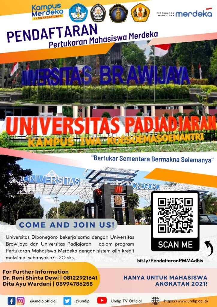 Come and Join Us! Program Studi menawarkan Program Pertukaran Mahasiswa Merdeka antara Administrasi Bisnis Universitas Diponegoro bekerjasama dengan Universitas Brawijaya dan Universitas Padjajaran dalam Program pertukaran mahasiswa merdeka dengan sistem alih kredit maksimal sebanyak +/- 20 sks. Kegiatan ditawarkan untuk angkatan 2021 yang akan dilaksanakan pada semester genap tahun ajaran 2022/2023. Besar harapan kami bahwa […]