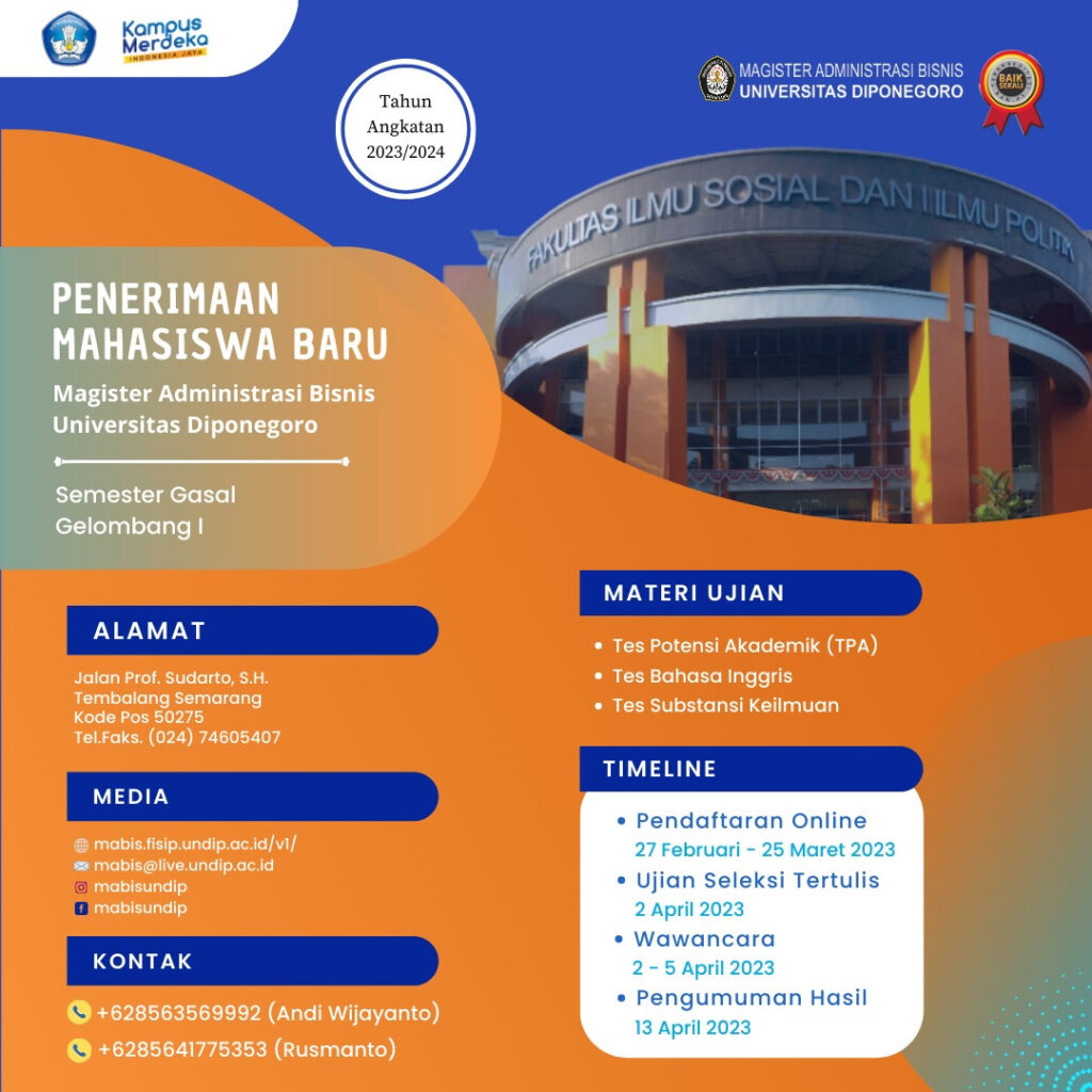 Penerimaan Mahasiswa Baru Magister Administrasi Bisnis Undip