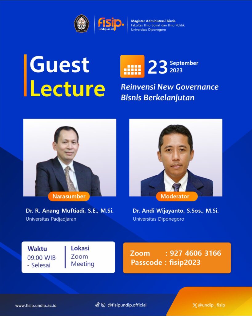 Kuliah Dosen Tamu Departemen Administrasi Bisnis dengan topik “Reinvensi New Governance Bisnis Berkelanjutan” adalah sebuah sesi pengajaran yang membahas strategi dan konsep terbaru dalam mengelola bisnis secara berkelanjutan. Dalam kuliah ini, seorang ahli dari Universitas Padjadjaran akan menjadi dosen tamu dan berbagi pengetahuan tentang bagaimana perusahaan dapat mengejar tujuan bisnis yang sukses sambil mempertimbangkan dampak […]