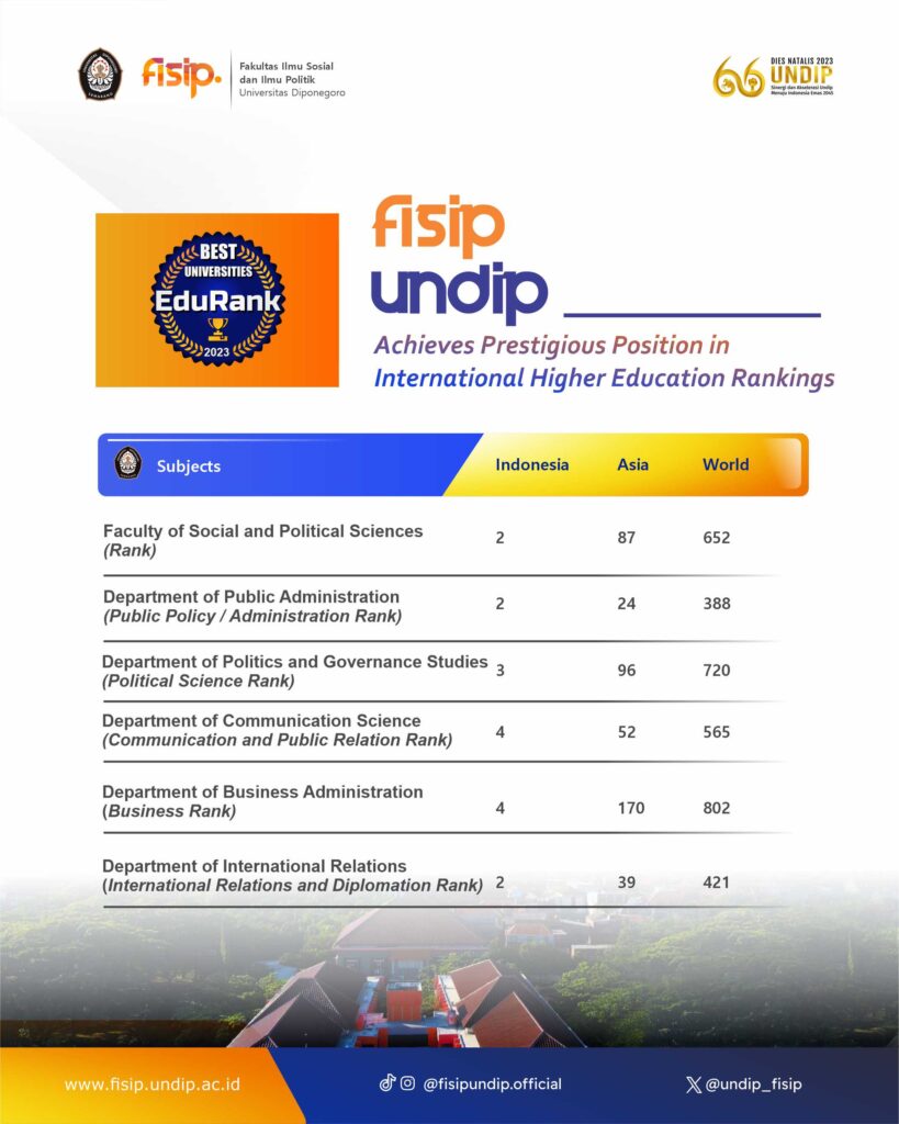 FISIP Undip Raih Posisi Prestisius di Peringkat Pendidikan Tinggi Internasional