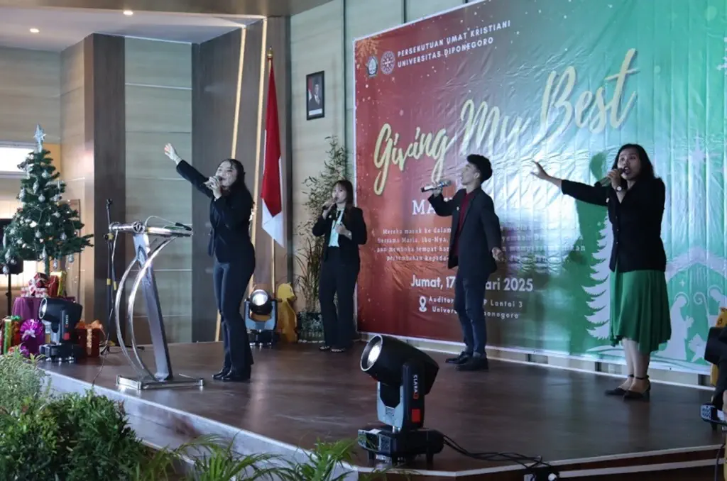 Semarang (01/20) – The Faculty of Social and Political Sciences (FISIP) at Universitas Diponegoro (Undip) served as the host for the 2024 Christmas Celebration of the Christian Fellowship (PUK) at Undip on Friday, January 17, 2025. The event, themed “Giving My Best,” was inspired by the Gospel of Matthew 2:11 and aimed to encourage the entire academic community of Undip to reflect on and apply the essence of wholehearted giving in life, particularly in education, research, and community service. This theme aligns with Undip’s vision, encapsulated in the slogan “Undip Noble! Undip Valuable!”