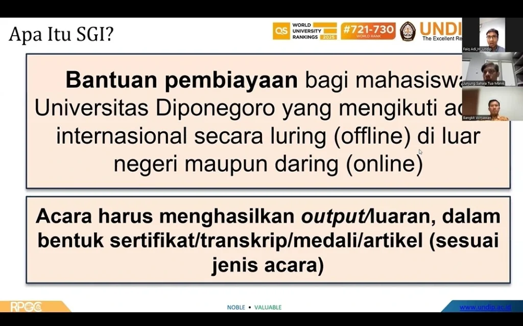 Semarang (27/02) – Unit Urusan Internasional (UUI) Fakultas Ilmu Sosial dan Ilmu Politik (FISIP) Universitas Diponegoro (Undip) menyelenggarakan Sosialisasi Program Students Go International (SGI) pada Rabu, 27 Februari 2025 secara daring melalui aplikasi Zoom Meeting. Kegiatan ini bertujuan untuk memberikan pemahaman dan kesempatan kepada mahasiswa FISIP Undip dalam mengikuti program mobilitas internasional, sebagai upaya meningkatkan […]