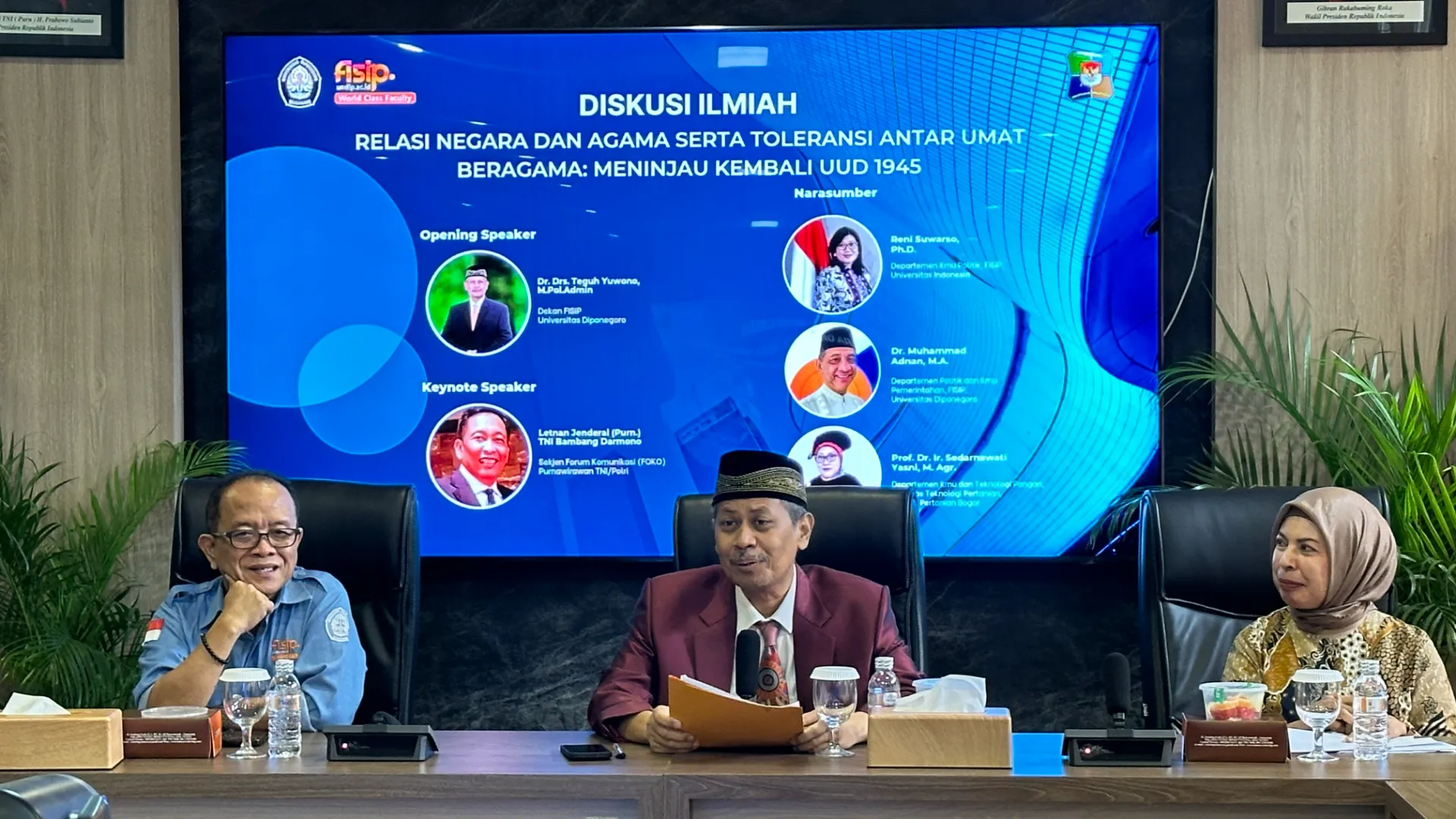 October 29, 2025 – The Department of Political and Governmental Sciences, Faculty of Social and Political Sciences, Diponegoro University, in collaboration with FOKO (Communication Forum for Retired Indonesian National Armed Forces and Police), held a Scientific Discussion on Wednesday (October 29) with the crucial theme: “The Relationship between State and Religion, and Tolerance Between Religious Communities: Revisiting the 1945 Constitution.” The event, held in the Senate Meeting Room of FISIP Undip, brought together experts to examine Indonesia’s constitutional foundations.