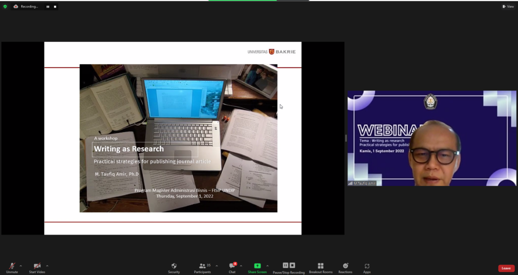 Semarang (1/9) – Kuliah Dosen Tamu Magister Administrasi Bisnis Ilmu Politik Fakultas Ilmu Sosial dan Ilmu Politik Universitas Diponegoro kali ini mengangkat tema Writing as Research: Practical Strategies for Publishing Journal Article. Kuliah kali ini dilaksanakan melalui aplikasi Zoom dan menghadirkan salah satu dosen program Manajemen Universitas Bakrie, M. Taufiq Amir. Ph.D. Kegiatan yang dimoderatori […]