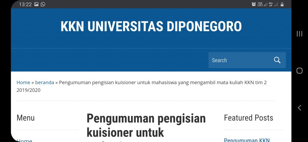 Sehubungan akan dilaksanakannya kegiatan KKN Undip Tim II Tahun Akademik 2019/2020, maka diberitahukan kepada semua mahasiswa yang telah mengambil mata kuliah KKN pada semester genap 2019/2020 untuk dapat mengisi kuesioner survey lokasi tinggal mahasiswa pada saat ini (apakah di Semarang atau sudah pulang ke kampung halaman). Pengisian survey dapat dilakukan pada link berikut: https://bit.ly/surveykknundip Pengisian survey […]