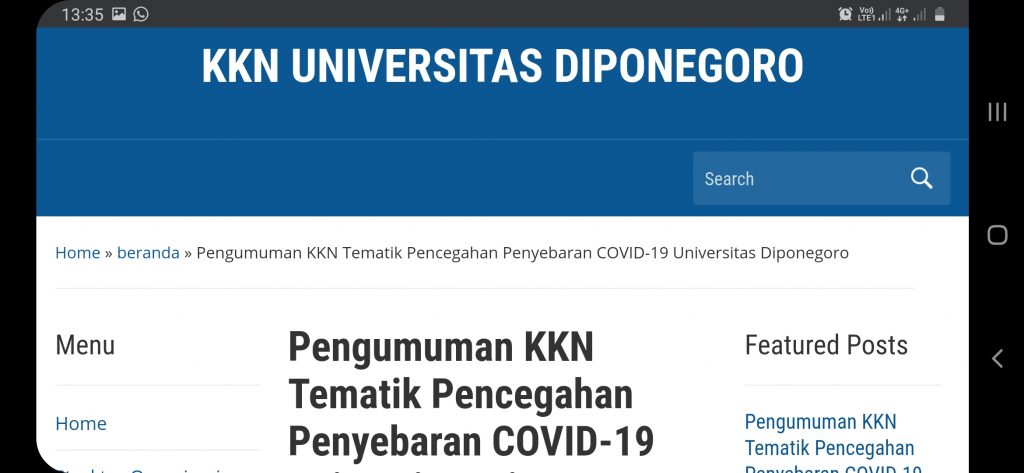 Pengumuman Pendaftaran KKN Tematik Pencegahan Penyebaran COVID-19 Universitas Diponegoro