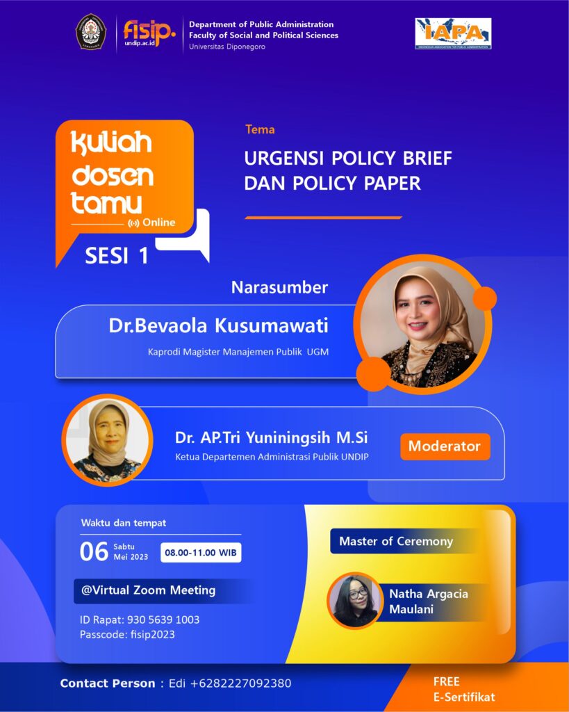 Kuliah Dosen Tamu : Urgensi Policy Brief Dan Policy Paper