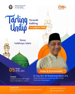 Tema : Indahnya Islam Imam dan Penceramah : Dr. Sos. Drs. KH Muhammad Adnan, M.A. Tempat : Masjid Darul Ilmi FISIP UNDIP