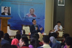 Undip memfasilitasi mahasiswa untuk berwirausaha. Salah satu diantaranya melalui acara Alumni Mengajar ini. Diharapkan knowledge dan experience yang dimiliki alumni di dunia wirausaha, mahasiswa dapat mengambil manfaat dan ilmu yang diberikan oleh para alumni sebagai bekal mereka untuk menjadi seorang wirausahawan. Hal tersebut dikatakan oleh Wakil Rektor III Undip Budi Setiyono