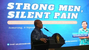 Semarang (4/9) – Guna mendukung kesehatan mental dan kesejahteraan psikologis mahasiswa, khususnya laki-laki, Direktorat Kemahasiswaan dan Alumni Universitas Diponegoro (Undip) melalui Unit Pelaksana Teknis Layanan Konsultasi, Disabilitas, Penegakan Disiplin, dan Etika Mahasiswa (UPT LKDPDEM) menyelenggarakan Talkshow bertajuk “Strong Men, Silent Pain”. Kegiatan yang berlangsung pada Kamis, 4 September 2025 di