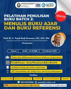UPT Perpustakaan Universitas Diponegoro kembali menggelar kegiatan peningkatan kapasitas akademik bagi sivitas akademika melalui Pelatihan Pemanfaatan E-Journal Cambridge dan Emerald. Pelatihan ini ditujukan untuk mendukung penguatan publikasi ilmiah, khususnya bagi dosen, peneliti, dan mahasiswa pascasarjana. Acara yang terbuka untuk umum ini menghadirkan narasumber Efa Silvia, yang akan memandu peserta dalam