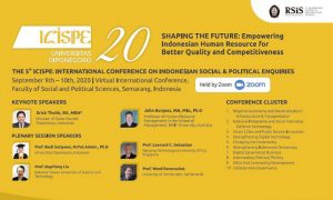Semarang (10/9/2020) – Fakultas Ilmu Sosial dan Ilmu Politik Universitas Diponegoro kembali menggelar konferensi internasional bertajuk International Conference on Indonesian Social & Political Enquiries (ICISPE) yang mempresentasikan 100 paper karya ilmiah kajian sosial politik. ICISPE 2020 dilaksanakan pada tanggal 9-10 September 2020 secara daring melalui Zoom dan live streaming