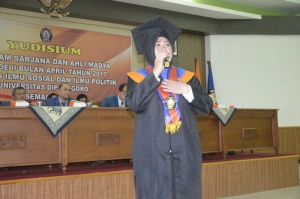 Semarang, FISIP Undip. Acara Yudisium Wisuda ke-146, Periode 2 Bulan April 2017 FISIP Undip dilaksanakan pada hari Kamis (20/04). Dalam yudisium kali ini jumlah wisudawan dari program S1 dan D3 sebanyak 205 wisudawan yang terdiri dari program S1 157 wisudawan dan program D3 48 wisudawan. Adapun rincian wisudawan untuk masing-masing