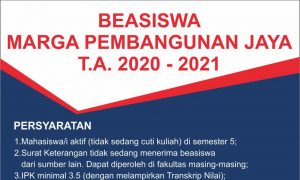 Telah dibuka pendaftaran beasiswa alumni bagi mahasiswa / mahasiswi aktif Universitas Diponegoro. Bagi mahasiswa yang berminat, dapat mendaftar melalui laman berikut. Berkas persyaratan terdiri dari: FC KTP, FC KTM/KTM Sementara, FC KK, SKTM ttd RT/RW/Kelurahan (bila ada) FC Seritifkat prestasi (bila ada) Berkas persyaratan dijadikan menjadi 1 file dengan format