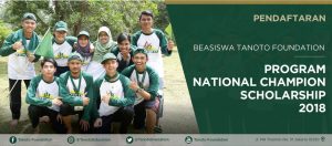 Program National Champion Scholarship (NCS) ini merupakan salah satu wujud komitmen dari pendiri Tanoto Foundation yaitu Bapak Sukanto Tanoto dan Ibu Tinah Bingei Tanoto untuk menanggulangi kemiskinan melalui Pendidikan (Education), Pemberdayaan (Empowerment), dan Peningkatan Kualitas Hidup (Enhancement). Pemberian beasiswa adalah salah satu program Tanoto Foundation dalam meningkatkan akses kepada pendidikan yang
