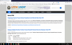 Diberitahukan dengan hormat bahwa berdasarkan hasil seleksi usulan Program Bantuan Pengelolaan Jurnal Menuju Terakreditasi Nasional dan Bantuan Pengelolaan Jurnal Menuju Bereputasi Internasional Tahun 2019, dengan ini diumumkan penerima program bantuan tersebut (lihat lampiran). Kepada Ketua Editor penerima bantuan diharapkan segera mengumpulkan fotocopy rekening Bank BNI atas pada bagian Keuangan LPPM
