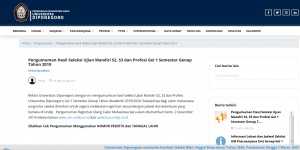 Kami informasikan kepada semua peserta Seleksi Ujian Mandiri Pascasarjana Semester Genap Gel 2, bahwa ujian akan dilaksanakan pada: Hari/Tanggal : Minggu, 12 Januari 2020 Lokasi : Gedung ICT Kampus Undip Tembalang Lokasi Tes Wawancara Prodi : Doktor Administrasi Publik, Magister Administrasi Publik dan Magister Ilmu Politik Perlengkapan yang harus