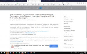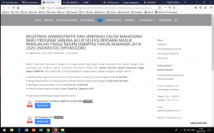 Registrasi Administratif dan Verifikasi Calon Mahasiswa Baru Program Sarjana dan Sarjana Terapan Jalur Seleksi/ Ujian Mandiri (UM) Tahun Akademik 2019/ 2020 Universitas Diponegoro