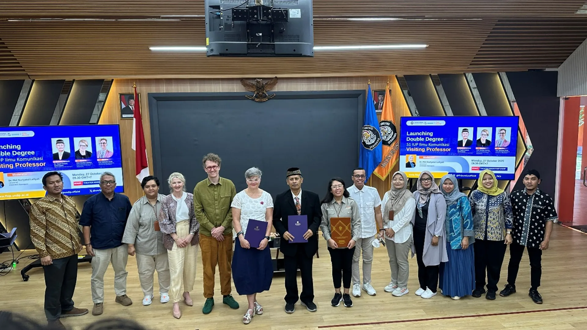 The launching ceremony was held on Monday, October 27, 2025, at the Theater Room, Building C, 1st Floor, FISIP Undip Campus, Tembalang. Representatives from The University of Queensland who attended the event included Prof. Heather Zwicker, Dean of the Faculty of Humanities, Arts and Social Sciences (HASS); Ms. Majella Ferguson, Senior Manager of the International Office of HASS; Professor Nicholas Carah, Director of Digital Cultures and Societies; and Nadia Sarah, Indonesia Representative of The University of Queensland. The UQ delegation was warmly welcomed by Dr. Drs. Teguh Yuwono, M.Pol.Admin., Dean of FISIP Undip, along with other Faculty leaders.