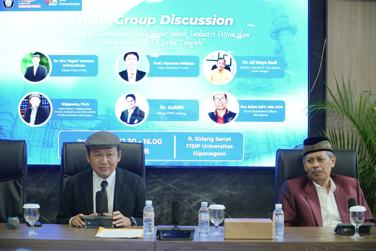 October 29, 2025 – To address the major challenges in Central Java, namely tidal flooding and the need for clean water for industry, the Department of Political and Governmental Sciences, Faculty of Social and Political Sciences, Diponegoro University (Undip), held a strategic Focus Group Discussion (FGD). The event carried the theme “Building Large-Scale Desalination for Green Industry and Tidal Flood Management in Central Java’s North Coast.”