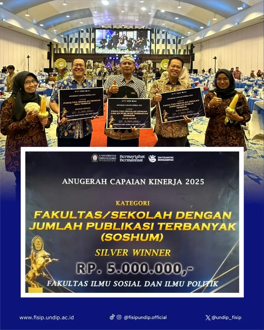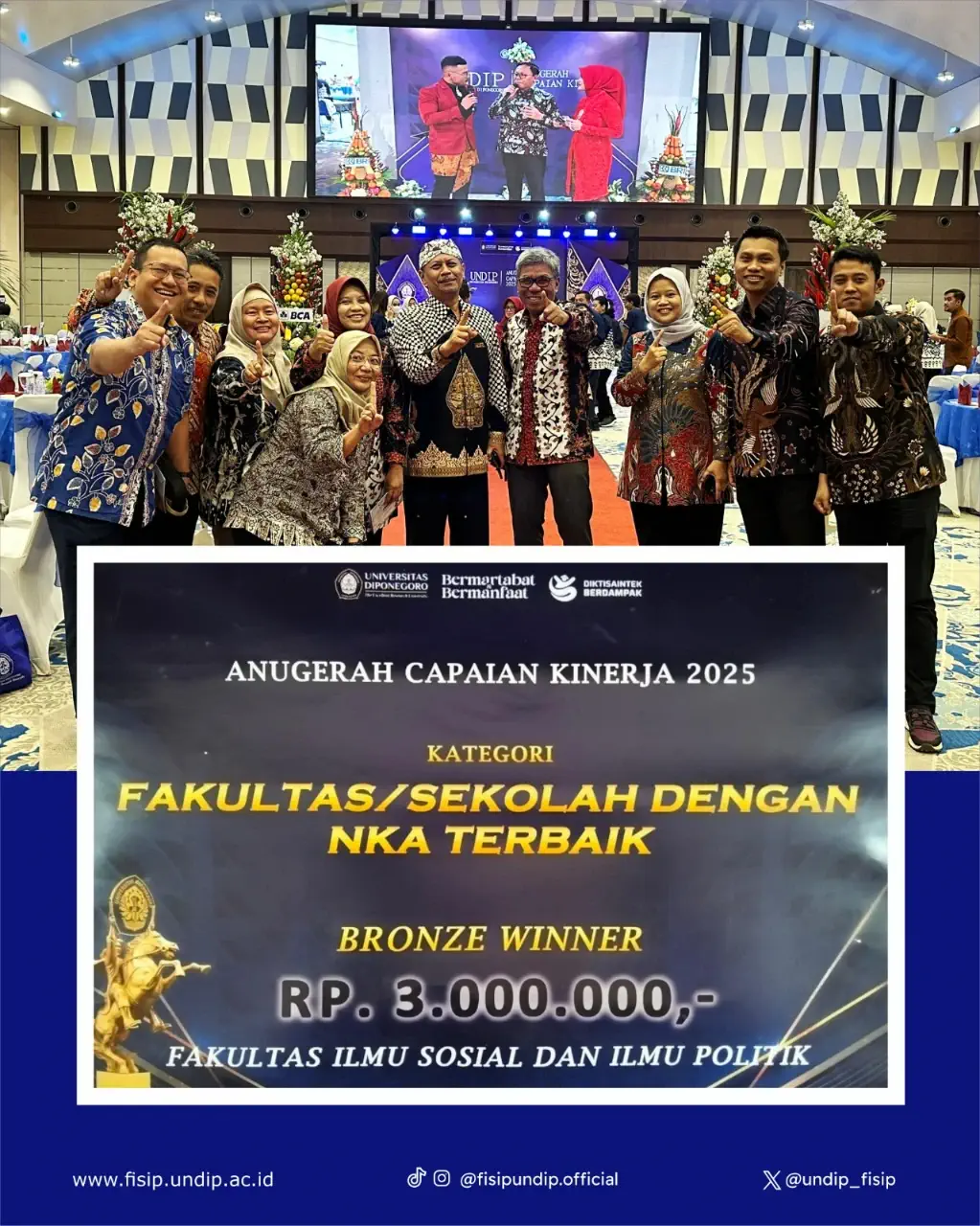 Semarang, January 27, 2026 — The Faculty of Social and Political Sciences (FISIP) of Universitas Diponegoro (Undip) has once again secured an impressive achievement at the 2025 Undip Performance Achievement Awards, held at the Muladi Dome Building, Tembalang Campus.