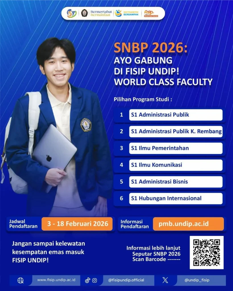 🌟 SNBP 2026 IS OFFICIALLY OPEN! Join FISIP UNDIP – a World Class Faculty – and choose your favorite study program: 1️⃣ Bachelor of Public Administration 2️⃣ Bachelor of Public Administration (Rembang Campus) 3️⃣ Bachelor of Government Studies 4️⃣ Bachelor of Communication Studies 5️⃣ Bachelor of Business Administration 6️⃣ Bachelor of International Relations 🗓 Registration […]