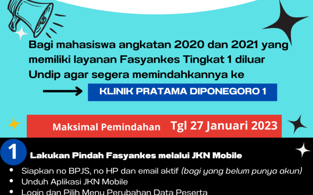 To respond to the announcement of the Rector of Universitas Diponegoro Number 2 / UN7.A1 / KM / I /2023, we hereby convey the information related to the transfer of Health Service Facilities (Fasyankes) to Klinik Pratama Diponegoro I for students of 2020 and 2021 classes, the complete information can be downloaded HERE Below are […]