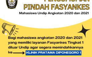 We hereby announce to all Undip students of the 2020 and 2021 classes to immediately change their health facility services to Klinik Pratama Diponegoro 1 in accordance with the provisions of the Rector’s Announcement in this link. Procedures for switching student health care facility through JKN Mobile are as follows: