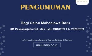 We hereby convey the announcement of Re-registration of UM Selection For Bachelor Degree Batch 2 of 2020 please download here Source: um.undip.ac.id