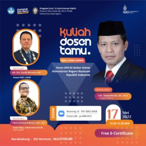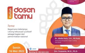 Dr. Abdul Aziz, S.H., M.Hum (Vice-Chairman of the Subang District Court, West Java Province) was a speaker at the Guest Lecturer of Political and Governance Studies, Faculty of Social and Political Sciences, Universitas Diponegoro. The class was moderated by Drs. Yuwanto, M.Si, Ph.D (A lecturer at the Undip Department of