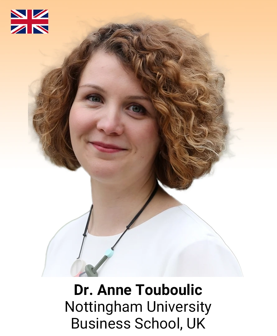 Dr. Anne Touboulic is an Associate Professor in Operations Management at Nottingham University Business School. Her interdisciplinary research explores socio-ecological transitions, food systems, and critical organisational theory, with work published in top journals such as Human Relations, Journal of Business Research, and Journal of Supply Chain Management. She collaborates across disciplines—including law, engineering, and plant sciences—and co-founded the Inclusive Food movement and Circular Agriculture Hub. Dr. Touboulic also serves as Associate Editor for Journal of Supply Chain Management and Management, and is a trained Climate Fresk facilitator and member of the ESRC Peer Review College. |