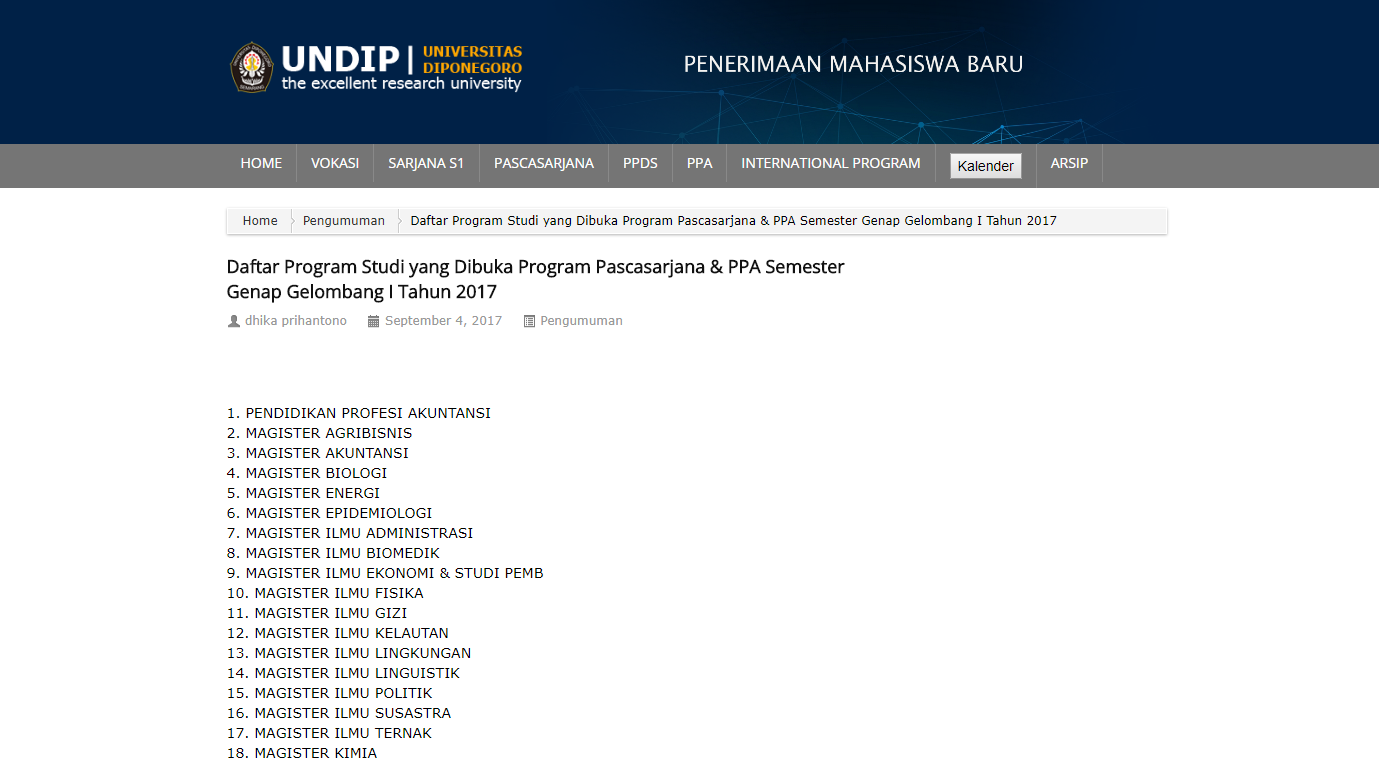 Daftar Program Studi yang Dibuka Program Pascasarjana & PPA Semester Genap Gelombang I Tahun 2017