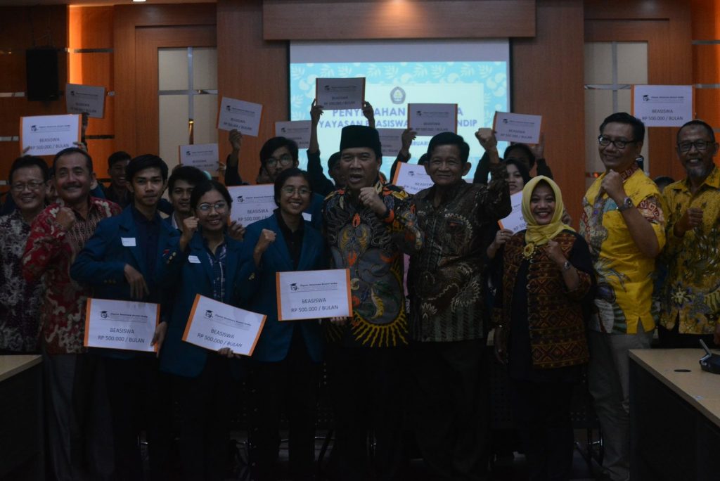 Yayasan Alumni Beasiswa Universitas Diponegoro kembali memberikan beasiswa kepada 54 mahasiswa Universitas Diponegoro, terdiri dari 16 penerima beasiswa baru dan 38 perpanjangan beasiswa. Total penerima beasiswa sejak program ini diadakan berjumlah 90 mahasiswa. Beasiswa ini diberikan dalam bentuk uang tunai sebesar Rp 500 ribu setiap bulan hingga lulus kuliah. Rektor Universitas Diponegoro Prof. Dr. Yos Johan Utama, SH, M.Hum didampingi Wakil Rektor Bidang Komunikasi dan Bisnis Dr. Darsono, SE., Akt., MBA dan Ketua Pengelola Beasiswa Alumni Undip Dharmawan, SE.Akt secara simbolis menyerahkan beasiswa kepada perwakilan mahasiswa penerima beasiswa. Acara penyerahan beasiswa ini dilaksanakan pada Sabtu siang, 29 Februari 2020 di Gedung Widya Puraya Kampus Undip, Semarang, Jawa Tengah.