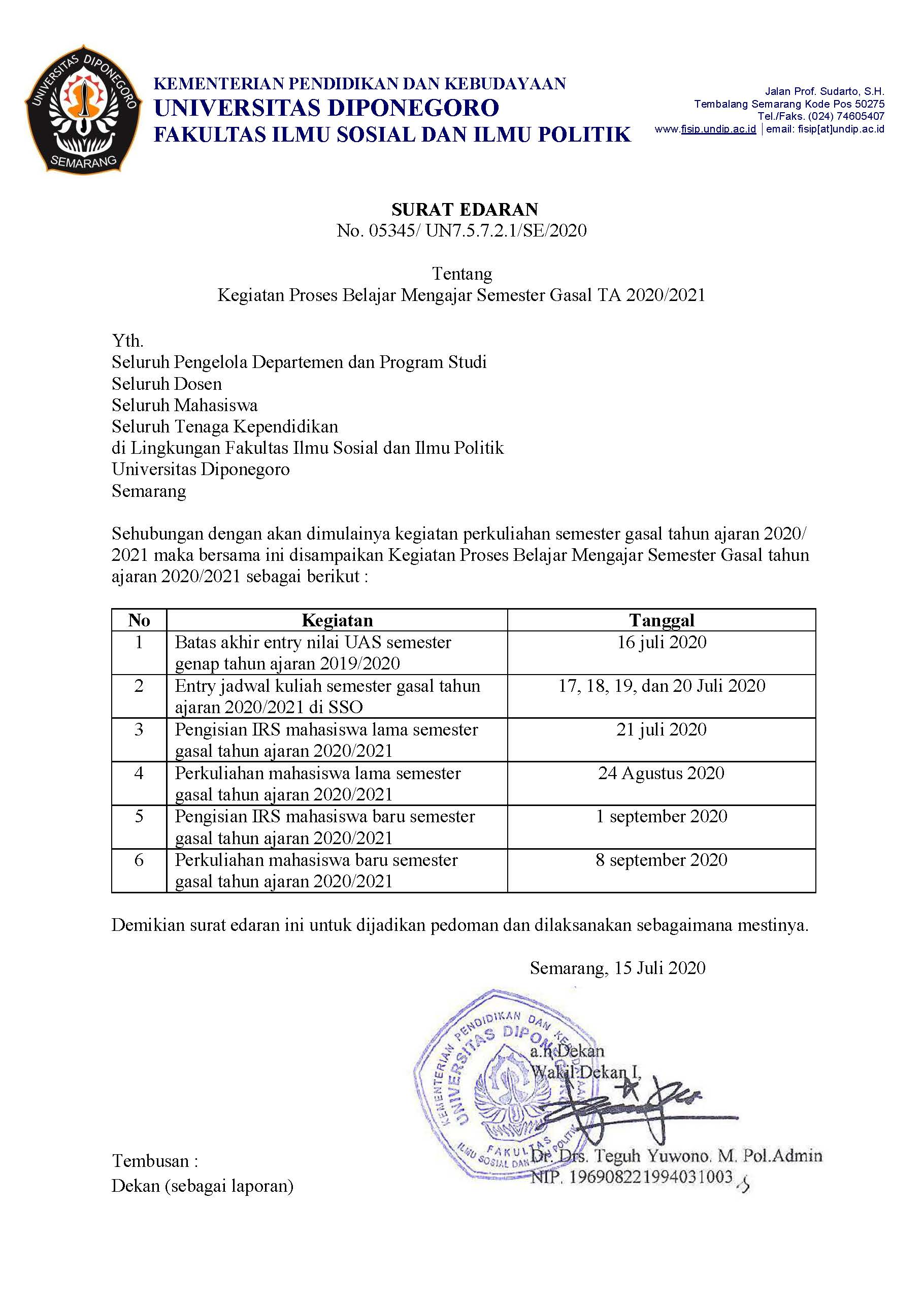 Fakultas Ilmu Sosial dan Ilmu Politik (FISIP) Universitas Diponegoro telah menetapkan tata tertib resmi pelaksanaan...