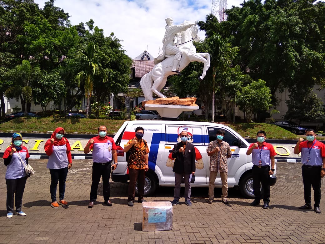 SEMARANG – Perusahaan logistik JNE memberikan layanan pengiriman gratis untuk mendukung distribusi bantuan Ikatan Alumni (IKA) UNDIP kepada warga di Kecamatan Tembalang dan sekitarnya. Pemberian bantuan berupa masker, hand sanitizer dan cairan disinfektan dari IKA UNDIP itu dilakukan dalam rangka Dies Natalis ke-63 UNDIP.