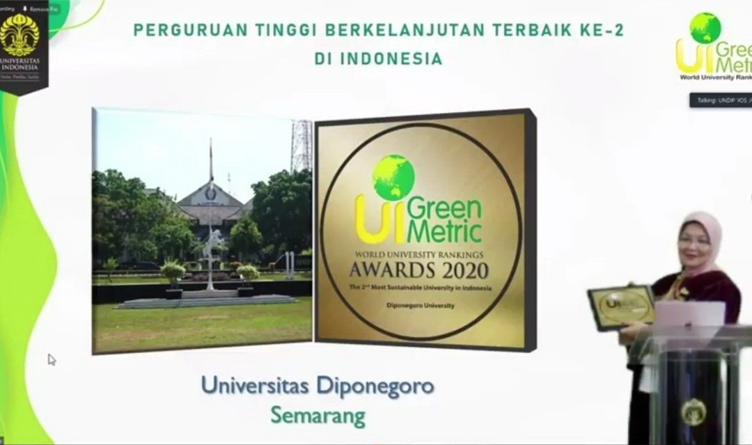 Prestasi ini merupakan apresiasi sekaligus dorongan untuk Undip agar meningkatkan usahanya dalam membangun kampus hijau, ramah lingkungan, dan berkelanjutan. Rektor Undip Prof. Dr. Yos Johan Utama, SH., M.Hum. menyampaikan terima kasih kepada seluruh sivitas akademika Undip yang telah melaksanakan program Sustainable Campus dengan kegiatan ramah lingkungan dan berkelanjutan. “Undip juga berupaya memperluas kawasan terbuka hijau berupa pembuatan taman dan hutan kampus, efesiensi energy, penggunaan energy ramah lingkungan, konservasi air, transportasi hijau, serta pembangunan kampus dengan konsep green and smart building“, ungkapnya. “Kedepannya, Undip berharap dapat berkontribusi lebih banyak untuk menjaga kelestarian serta konservasi sumber daya alam sehingga berdampak baik bagi Bumi kita tercinta”, pungkasnya.